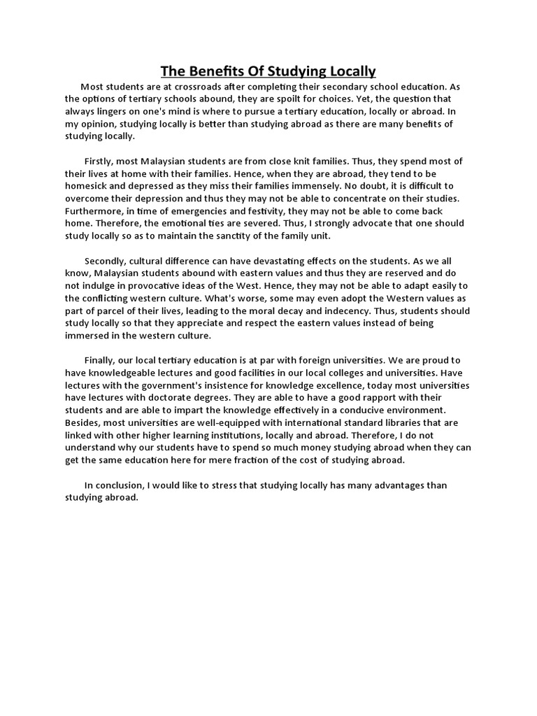Benefits of Studying Locally Essay